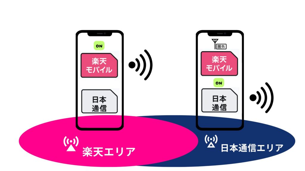 電波 | 安いけどエリアに不安 | ドコモ回線で安定 | 楽天が圏外の時に自動でサポート |